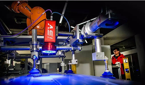 視覺引導系統(tǒng) 傳統(tǒng)汽車制造中,車身零部件自動上料需要利用高精度料箱,并考慮到機器人的重復定位精度誤差,系統(tǒng)不僅前期安裝成本高,而且后期出故障率更高,系統(tǒng)維護成本高。ISV視覺引導系統(tǒng)(Vision Guiding)結(jié)合了多種視覺檢測技術與機器人運動學原理,旨在為工業(yè)現(xiàn)場的每臺機器人安裝“眼睛”。 系統(tǒng)將突破機器人只能單純地重復示教軌跡的限制,使其能根據(jù)被操作工件的變化實時調(diào)整工作軌跡,提升機器人智能水平,提高生產(chǎn)效率,改善生產(chǎn)質(zhì)量。