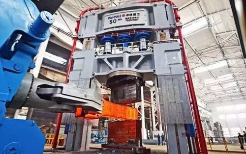 近日,中信重工重大技改項目5000噸自由鍛造油壓機,與配套的200噸/米操作機同步聯動作業首鍛成功,標志著該油壓機正式入列中信重工重大裝備集群,成為中信重工做優做精傳統核心制造產業的重要利器。 據此,中信重工擁有了包括1600噸水壓機、3150噸水壓機、5000噸專用模鍛壓機、5000噸油壓機、18500噸油壓機,以及Ф5米數控軋環機等在內的梯級鍛造壓機集群,形成了完備的鍛造體系。中信重工成為國內少數可提供從10公斤以上中小型鍛件至450噸以下大型鍛件的企業。 鍛件是電力、冶金、石化、核電、航空航天、重型機器等的關鍵件、基礎件,鍛件產業的科技水平、生產能力是衡量一個國家工業發展水平和綜合國力的重要體現。深耕中國基礎工業60余年,在經濟新常態持續的環境下,中信重工以踐行中國制造2025國家戰略為契機,推動企業向傳統動能和新動能“兩輪驅動”發展轉型。作為傳統核心制造領域的基礎,中信重工引入戰略投資,完善提升研發制造能力,深化供給結構優化、質量提升,大力發展鑄鍛產業,在市場上打出了中信重工的金字招牌。 本次投用的5000噸油壓機高13.5米,地下深4.5米,移動工作臺3.4×7米,垂直凈空距6米,活動橫梁行程2.5米,鍛件正負誤差不超過1毫米,快鍛次數每分鐘可達68次以上,鍛造一個鍛件可單人完成操作,最大鐓粗力7000噸,相比國內同規格水壓機,工作效率可提高3倍以上,系統節能30%以上。即便與中信重工現有世界最大最先進的的18500噸油壓機相比,其工作效率和自動化程度也旗鼓相當,控制系統、精度檢測等均堪稱18500噸自由鍛造油壓機的“升級版”,與18500噸自由鍛造油壓機一樣位列世界鍛造設備領先水平。 在強化制造能力的同時,中信重工依托企業自身建設的國家重點實驗室下屬的熱工實驗室、省級大型鑄鍛件工程技術中心和技術創客群、工人創客群等,構建集研發、試驗、制造一體的創新生態鏈,持續專注新材料、新技術、新工藝、新產品的開發研制。目前,中信重工在技術上,擁有了以復雜先進的成形技術、完備有效的中心壓實技術為代表的關鍵基礎件核心制造技術;在能力上可一次性組織提供精煉鋼水1000噸,最大鋼錠600噸、最大鍛件450噸;在品種上可生產寬厚板軋機大型支承輥、百萬千瓦級汽輪發電機轉子、最大直徑7~8米的大型壓力容器類管板及筒體類環形鍛件,整體實力達到國內先進水平。參與完成的《重型裝備大型鑄鍛件制造技術開發及應用》項目榮獲2016年度國家科技進步獎二等獎。 依托完整的鍛造體系和領先的研發制造水平,中信重工在航空航天、石化加氫、核電等高附加值鍛件產業領域不斷取得突破。 在航空航天領域,連續完成從神一到神十一神舟系列飛船逃逸艙及逃逸火箭發動機殼體鍛件。 在石化加氫領域,成功鍛造出國內最大規格Φ6.7×3.95米加氫筒體和Φ7.8米國內最大整鍛管板鍛件。目前中信重工成為國內少數能提供大型石化領域專用加氫鍛件企業之一,僅今年一季度該領域新增合同總產值近1億元。 在核電領域,生產的接管法蘭、管板、底板等鍛件產品,成功應用于山東、福建、遼寧以及巴基斯坦等國內外多個核電站。 在冶金領域,分別采用438噸、398噸鋼錠成功鍛造大型軋機支承輥、機架以及采用120噸鋼錠成功生產國內最大內徑2米、長度8.5米整鍛管模鍛件。 在電力領域,分別采用280噸、231噸鋼錠成功鍛造出特大型水輪機主軸、轉子以及超超臨界轉子鍛件。