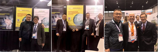 圖:中國機器人產業聯盟副會長陳家良現場合影 圖一(左上):中國機械工業聯合會展覽部副主任、中國機器人產業聯盟副秘書長陳家良先生和韓國機器人產業協會Mr. Johnny Kim先生 圖三(左下):中國機械工業聯合會展覽部副主任、中國機器人產業聯盟副秘書長陳家良先生和國際機器人聯合會主席Mr. Joe Gemma先生、 美國機器人工業協會會長Mr. Jeff Burnstein先生在AUTOMATE現場 展會期間,CIROS組委會除了帶領國內考察團隊零距離接觸北美規模大、代表最新技術的工業機器人展覽會之外,還帶領考察團隊參觀考察了Panasonic工廠(松下位于北美的重要子公司)、Alphabet(谷歌機器人業務集團)、adept公司等知名機器人企業。