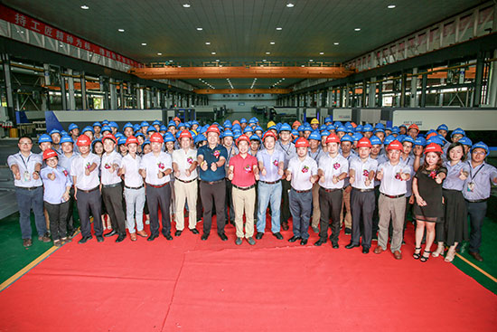 大族激光智能裝備集團陳焱總經理、鑫國邦物流有限公司張邵軍總經理共同為新車間揭牌。大族激光智能裝備集團陳總介紹了車間揭牌背景、意義,大族激光智能裝備集團2017年上半年業績及對未來的展望。首先,新的標準產品生產車間在鑫國邦物流有限公司張總的大力支持與協助下,生產制造總部的共同努下,兩個月內即迅速投入生產,極大地緩解了今年高速增長的業績帶來的生產壓力。陳總特別介紹,新車間總占地面積18000平方米,擁有100個生產工位,已全面實現標準化、模塊化制造。大族激光智能裝備集團要把這個18000平方米車間建成世界最頂級、最高效、最能體現激光智能裝備生產價值的的車間,向世界展示大族激光的制造實力。