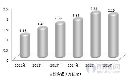 從投資規模來看: 2016年,石化行業完成固定資產投資2.2萬億元,下降5.9%,占全國工業投資總額的9.4%。其中專用設備制造業固定資產投資額為917.5億元,同比下降23.9%。盡管整體上2016年是投資額從2011年以來的首次下降,但是投資總量還保持在較高水平。 圖表:2011-2016年石化行業投資情況(單位:億元)