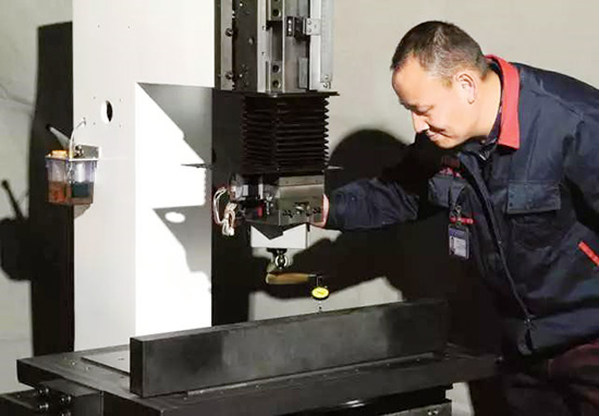 裝配精度校正過程 當漢奇新一代中走絲機床在2010年的廣東DMP展會上首次亮相。讓人耳目一新的中走絲機床贏得了行業廣泛的贊譽,電加工行業的一些老前輩們紛紛感慨,“我們干了一輩子的線切割,沒想到漢奇能把中走絲線切割做的如此完美。”