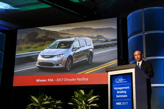Richard Yen, Senior Vice-President, Automotive and Global Markets Team, Altair, at the 2017 Enlighten Awards Presentations at the Center for Automotive Research (CAR) Management Briefing Seminars (MBS). Altair and the Center for Automotive Research (CAR) announced the winners of the 5th annual Altair Enlighten Award, which strives to promote and celebrate innovation in automotive lightweighting. The winner of the Full Vehicle category was the 2017 Chrysler Pacifica, which is an impressive 249 pounds (113 kilograms) lighter than its predecessor. Toyota’s carbon fiber closure panels for the 2017 Prius Prime and Lexus LC500, and Faurecia’s Adaptive Valve for exhaust systems employed on the 2017 Chevrolet Silverado took the top honors for the module category. Swedish metal forming specialist AP&T claimed the Enabling Technology category for its innovative aluminum forming technology used on several European vehicles. The awards were presented at the 2017 CAR Management Briefing Seminars (MBS) in Traverse City, Mich., US. “For the fifth year, our expanding field of global entries demonstrates an incredibly impressive range of innovations helping to meet the worldwide weight reduction challenges of modern automotive manufacturing,” says judging chair Jay Baron, president and CEO of CAR, and director of CAR’s Coalition for Automotive Lightweighting Materials. “FCA, Toyota, Faurecia and AP&T and all our 2017 finalists are contributing to reductions in weight, fuel consumption, and CO2 emissions. The Enlighten Award is an excellent way to highlight and recognize these achievements.” The FCA team built the 2017 Chrysler Pacifica from the ground up to achieve a lighter vehicle with improved safety, better NVH performance and superior interior space and comfort. The body system, which shed 168 pounds (76 kilograms), utilized high strength steels and large amounts of dual phase and hot stamped material grades for improved impact protection at reduced weight. Aluminum and cast magnesium were used for the rear sliding door, liftgate and the instrument panel beam, while the front-end module is a steel-plastic overmold to improve part integration and stiffness. Simulation methodologies including topology optimization studies were used throughout the vehicle’s development to ensure a material efficient design. “The 2017 Chrysler Pacifica is our engineering response to the rapidly changing industry climate,” says Phil Jansen, Head of Product Development – FCA North America. “Customers are in need of ever-greater efficiency, but not at the expense of functionality. The Pacifica’s spacious package, delivered with a reduction in mass, allows us to exceed expectations.” For the module category, which focuses on vehicle systems, subsystems and components, the international judging panel could not split the winners, opting to award the top prize to both Toyota and Faurecia. Toyota’s winning entry concerned the side and luggage doors of the 2017 Lexus LC and the liftgate of the 2017 Toyota Prius Prime which feature carbon fiber reinforced plastic (CFRP) inner panels, combined with aluminum, glass-fiber reinforced plastic (GFRP) and polypropylene outers for components that are 47% lighter than conventional metal structures. “Toyota is excited to offer closure systems that are optimized to the unique mission of each vehicle,” says JP Flaharty, Executive Program Manager at Toyota Motor North America R&D. “With CFRP applied to the Prius Prime liftgate and the Lexus LC side and luggage doors, our customers can recognize the light touch and high tech appearance of these sophisticated, lightweight door systems. Our entire development team is honored to receive the Altair Enlighten Award in the module category.” Faurecia’s winning entry was the Adaptive Valve, an offset shaft spring return butterfly valve located in the intermediate pipe of the exhaust system. Its specific purpose is to address NVH concerns caused by cylinder deactivation by presenting the gas flow with a variable restriction. The valve requires less package space than traditional systems and its innovative design reduced the muffler weight of the 2017 Chevrolet Silverado by 26.5 pounds (12 kilograms). "We are honored to receive Altair’s Enlighten Award for the FCM Adaptive Valve," says Dave DeGraaf, president of Faurecia Clean Mobility North America. "We are also extremely proud of our Adaptive Valve team for their hard work on this project. This recognition is a testament to their creativity and dedication.” Finally, the Enabling Technology category, a new award introduced in 2017 to recognize technological advances that enable manufacturers to save weight, was claimed by AP&T. The company’s aluminum forming technology is the world’s first multipurpose production line for high strength aluminum sheet metal, enabling flexibility in the forming of high strength car body components with complex shapes, leading to weight savings between 30-50%. “It is truly a great honor for AP&T to receive the 2017 Enlighten Award,” says Christian Koroschetz, CTO, Technology Development at AP&T. “Winning this award is a big accomplishment for the whole AP&T team, who is dedicated to help our customers constantly produce lighter, safer and more energy-efficient products with a low climate and environmental impact. The multipurpose production line we developed enables outstanding flexibility in the forming of high-strength aluminum components as well as an enhancement in freedom of design, making function and part integration possible in new ways.” The runner-up for this year’s Full Vehicle award was Honda for the multi-material space frame used to make the 2017 Acura NSX 48.5 pounds (22 kilograms) lighter. Constellium claimed the second place title in the Enabling Technology category for the HSA6 aluminum alloys, which support the development of vehicles that are 15-30% lighter than those produced using conventional