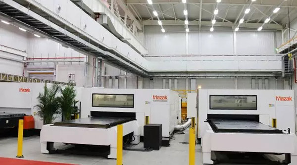參觀新工廠 整個鈑金新工廠分為三部分: 第一個是智能化鈑金加工車間,將采用一條鈑金加工的無人化生產線,由2臺從日本Mazak進口的CO2激光機和1臺遼寧工廠自行生產的光纖激光機共同組成,并且相比CO2激光機,遼寧工廠生產的光纖激光機在環保、切割效率方面優勢顯著。