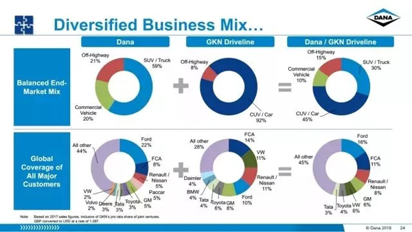2018年3月9日,美國德納股份(Dana Inc.)與英國吉凱恩(GKN)傳動系統事業部宣告合并,交易金額高達61億美元(約合人民幣386億元)。成為今年以來汽車零部件行業最大并購事件。