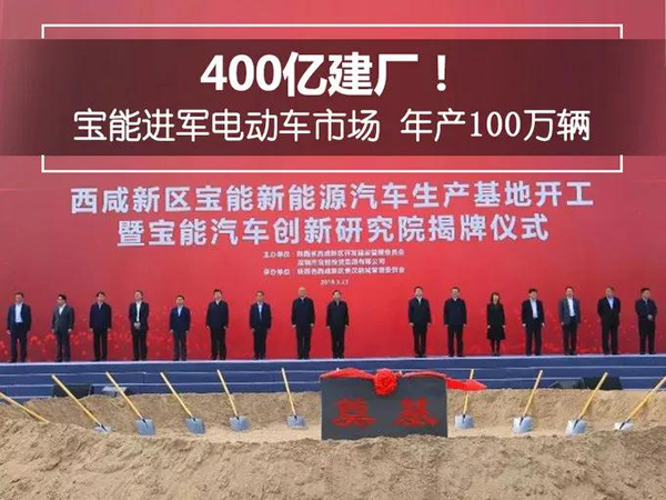 2018年3月23日,寶能新能源汽車生產(chǎn)基地在陜西西咸新區(qū)開(kāi)工建設(shè)。項(xiàng)目總投資400億元,規(guī)劃產(chǎn)能100萬(wàn)輛(其中一期50萬(wàn)輛)新能源汽車及配套項(xiàng)目,整車和零部件制造產(chǎn)值將超千億元。如此大手筆的投入,能看出寶能發(fā)力新能源汽車的決心。