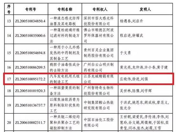 中國鍛壓協會推薦企業入選中國專利獎獲獎名單