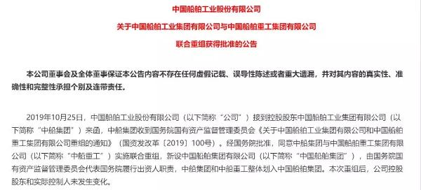中國船舶工業集團(簡稱“中船集團”)與中國船舶重工集團(簡稱“中船重工”)俗稱“南北船”,1999年由原船舶工業總公司拆分而成。 業內人士普遍認為,一旦“南北船”完成合并,將提高生產效率,減少內部無效競爭,加強軍工產品研發能力。同時,此次資產重組有利于優化資本結構、積極穩妥加快推進市場化債轉股及船舶行業戰略性重組。 中船集團組建于1999年7月1日,旗下有中國船舶、中船防務、中船科技3家上市公司,擁有修造船、海洋工程、動力裝備、機電設備、信息與控制、生產性現代服務業等6大板塊。 中船重工成立于1999年7月1日,旗下有中國重工、中國動力、中國海防、中國應急、久之洋、樂普醫療等5家上市公司。 2019年7月1日晚,中船集團與中船重工旗下的多家上市公司發布公告稱,中船集團與中船重工正籌劃戰略性重組。