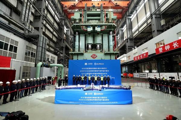 11月12日,8萬噸模鍛壓力機現場,中國二重萬航模鍛為法國賽峰起落架系統公司生產的第100件波音787前起落架外筒鍛件正式發運。中國二重副總經理胡洪在發運儀式上宣布,由萬航模鍛研發的具有“世界級”超大尺寸和重量的波音787主起落架鍛件啟動首批生產。同時,萬航模鍛研制的空客A320/321主起落架外筒通過鑒定。 這一系列重要航空模鍛件的研制成功和技術突破,標志著萬航模鍛已成為國內最大的大型客機起落架鍛件制造基地,成為萬航模鍛全力融入世界航空產業鏈的重要里程碑。 法國賽峰起落架系統(蘇州)有限公司總經理Mr.Mathieu PACAULT在致辭中表示,“今天的成績顯示,萬航模鍛已經掌握了批量生產大型航空鍛件的能力,并做好了服務全球航空市場的準備。” 萬航模鍛黨委副書記、總經理馮彥成在致辭中表示,歷經8年的合作,萬航模鍛收獲的不僅僅是訂單,而是對標世界級企業的管理能力,交付的也不僅僅是產品,而是不負厚望、不辱使命的重托與信任。萬航模鍛將持續以創新驅動發展,構筑起民機超大型復雜結構件的技術高地,鍛造全球化的品牌, 打造真正具有國際競爭力的航空模鍛企業。
