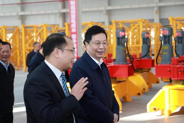 12月11日,長沙市市委書記胡衡華、長沙市市長胡忠雄、寧鄉市長付旭明一行蒞臨三一重起塔機智能制造工廠,在三一重工總裁向文波及三一重起管理團隊陪同下驗收項目建設成果。