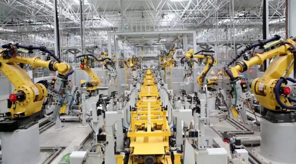 該工廠從建設、制造到管理實現(xiàn)了高度“智能化、綠色化、信息化”。其中,焊裝車間擁有98臺日本發(fā)那科機器人,自動化率達100%;涂裝車間擁有46臺涂膠、噴涂機器人;沖壓車間內(nèi)兩條大型全自動高速沖壓連續(xù)生產(chǎn)線,具備ADC一鍵換模及ATC一鍵換端拾器功能;總裝車間的SPS+AGV自動輸送系統(tǒng),自動上線率達70%。工廠實現(xiàn)了智能化生產(chǎn)制造和智能化運營管理,成為中國一流的現(xiàn)代整車工廠。