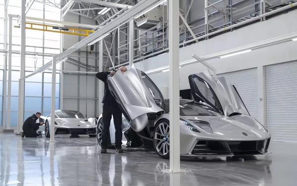 目前,一臺龍門式起重機、多臺車輛升降機以及一臺車輪定位坡道等設備已經安裝完畢。 工廠內部照明系統由超過3萬個最新的高能低耗LED燈組成。出廠前,Evija會經過世界上最先進的“光隧”,工匠們將在這條終檢線上仔細檢查每一輛Evija,保證完美的出廠狀態。