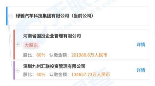 根據天眼查顯示,此前,深圳九州匯連投資管理有限公司是綠馳汽車的唯一股東方,注冊資本13億余人民幣,擁有100%控股權。而在2020年3月6日,綠馳汽車已完成股權變更,投資人新增河南省國投企業管理有限公司,注冊資本增資20余億人民幣,獲得60%股權,成為綠馳汽車實際控制人并正式更名。河南國投入主綠馳汽車,這也是造車新勢力中第一家被國資控股的企業。