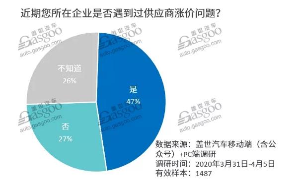 僅17%的參與者認為后期不會有更多的企業加入漲價潮。雖然目前很多上游原材料供應商產能緊張,但下游的Tier1、整車廠等在此次疫情中也受到了較大的沖擊,部分在重點疫區的企業甚至不得不繼續延長停工時間,由此導致下游對相關零部件的需求也出現了大幅度的下滑,在供需兩弱的情況下,市場缺乏漲價動力!肮井a品價格本質上是根據市場供需調整,而非由疫情決定!币患襇LCC公司的員工如是說。