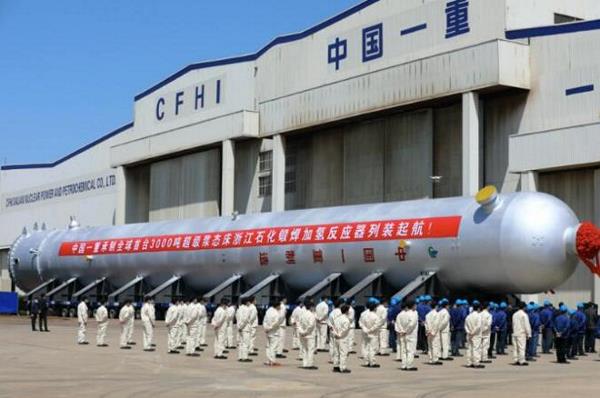 6月1日,由中國一重集團(tuán)大連核電石化有限公司承制的全球首臺3000噸超級漿態(tài)床浙江石化鍛焊加氫反應(yīng)器完工發(fā)運(yùn)、列裝起航。該設(shè)備的成功制造再次刷新了世界鍛焊加氫反應(yīng)器的制造紀(jì)錄,標(biāo)志著我國超大噸位石化裝備制造技術(shù)繼續(xù)領(lǐng)跑國際,進(jìn)一步彰顯了中國一重作為“大國重器”的技術(shù)創(chuàng)新能力和超級工程的創(chuàng)造實(shí)力。