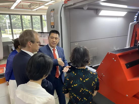 百超中國總裁游松博士對總領事一行表示歡迎,分享了百超的業務發展計劃,在新冠肺炎疫情爆發后重開局面。游松博士向尊貴的客人介紹了百超公司和百超的先進產品,并參觀了我們在上海的體驗中心,見證了百超高性能的激光切割、折彎和自動化設備。