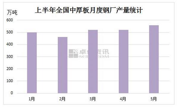 2020年中厚板價格中心繼續(xù)下移,截止到2020年6月16日中厚板全國市場均價3846.8元/噸,較去年同期下降84.9元/噸,降幅為2.16%。而在2020年1月末到2月初,市場因公共衛(wèi)生事件沖突影響,大部分商戶休市,開市時間較去年晚半個月左右,整個事件席卷全球,不論是給中國還是給世界都帶來了不可估量的損失。上半年最低點在3月22日,當(dāng)天市場平均價3632.35元/噸,較最高點價差為214.4元/噸。公共衛(wèi)生事件給各行各業(yè)造成了短暫“休克性”的一擊,中厚板的下游開工情況收到嚴(yán)重阻礙,工業(yè)制造業(yè)受到嚴(yán)重影響,短期內(nèi)產(chǎn)業(yè)和貿(mào)易無法恢復(fù)對我國上下游制造業(yè)形成夾擊效應(yīng)。整個大宗市場價格皆進入下降空間。在進入2月中下旬,價格這才止跌回穩(wěn),經(jīng)濟面開始修復(fù),中厚板價格在震蕩了2個月之久,價格開始出現(xiàn)上漲跡象,在整個板材產(chǎn)業(yè)鏈中,中厚板算是最為抗跌的產(chǎn)品,其主要原因應(yīng)該從供需面分析。 中厚板月產(chǎn)量