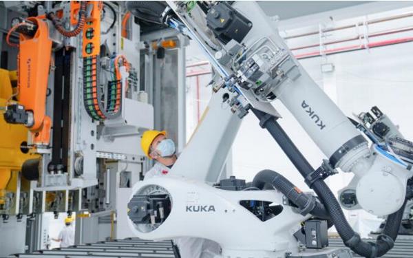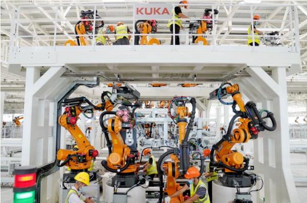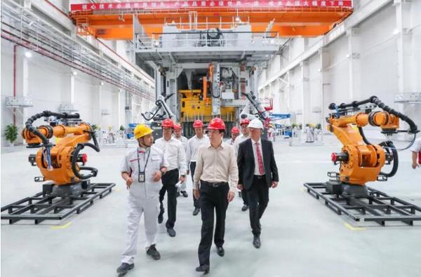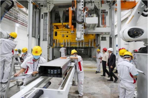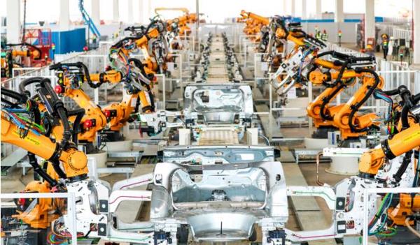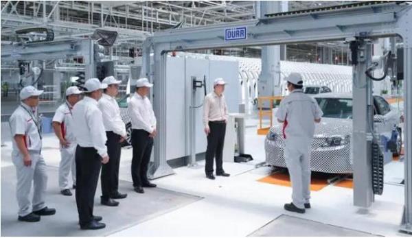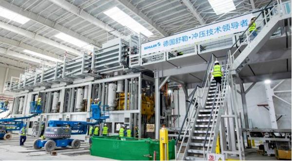 據悉,這兩大基地達產后能做到“1分鐘生產1臺車”的超高效率。目前兩大基地共裝配了2545臺機器人,四大車間分別配備了德國舒勒全自動沖壓生產線、德國庫卡和日本發那科智能裝備、德國杜爾的全自動涂裝生產線以及全自動裝配線。 沖壓車間采用德國舒勒的沖壓裝備,擁有MMS智能自診斷系統,是很先進的全自動沖壓生產線。