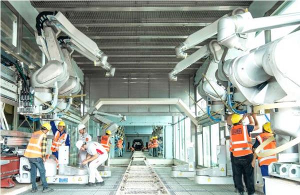 Ro-Dip 360°翻轉線 裝配車間采用德國杜爾裝配線,獨創虛擬匹配系統,是世界上自動化率超高的汽車裝配線。