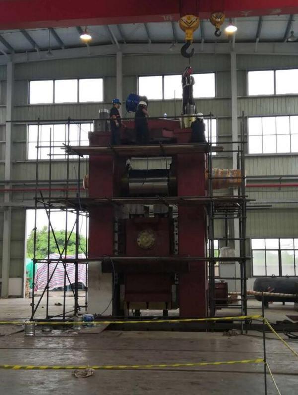 5000T熱模鍛壓機(jī)安裝工作分為壓機(jī)拉桿預(yù)緊、滑動(dòng)箱體連接、傳動(dòng)軸及大齒輪安裝三個(gè)階段。在第一階段安裝過(guò)程中,大家克服高溫天氣、現(xiàn)場(chǎng)交叉作業(yè)等不利因素影響,不斷摸索,總結(jié)經(jīng)驗(yàn),以確保順利完成熱模鍛壓機(jī)組裝工作。