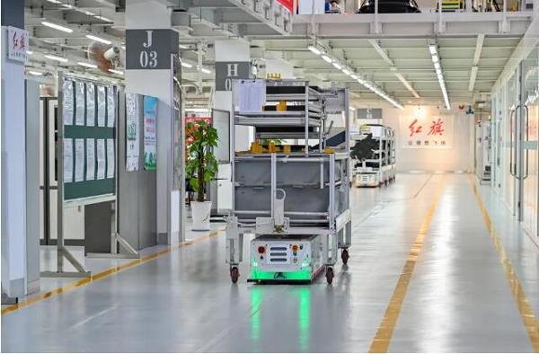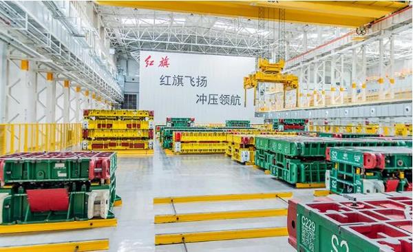 如果說精益化生產(chǎn)保證關(guān)于產(chǎn)品生產(chǎn)中各環(huán)節(jié)的質(zhì)量把控,那么數(shù)字化生產(chǎn)則是將每一環(huán)節(jié)以高效的方式完美串聯(lián)。 在數(shù)字化生產(chǎn)方面,紅旗工廠沖壓車間的雙飛翼式換模,H總裝車間的AGV導(dǎo)航車、“大黃鴨”機(jī)器人等都在助力紅旗智能制造。 ![]() 紅旗工廠H總裝車間擁有近200臺各種型號的AGV導(dǎo)航車,這一輛輛AGV導(dǎo)航車沿著地面上33條灰色磁條軌跡行走,車上裝有紅旗車各種類型的配件。 ![]() 這條全線AGV自動物流系統(tǒng),其采取RFID自動識別技術(shù),可自動識別物料配送位置,同時能夠自動識別前方行人,進(jìn)行減速或避讓,真正做到智能物流。這一場景連連讓前來參觀的媒體人們大為贊嘆。 ![]() 綠色化生產(chǎn) 在節(jié)能綠色方面,紅旗工廠創(chuàng)新應(yīng)用了“會讀生產(chǎn)計劃”的能源管控系統(tǒng),可根據(jù)每天的生產(chǎn)計劃,實現(xiàn)工位照明、空調(diào)、烘干爐、空壓機(jī)的定時開啟和關(guān)閉,開啟了全新車間能源管理模式。