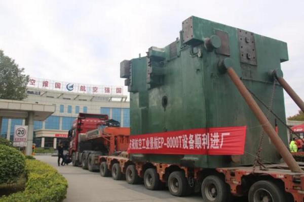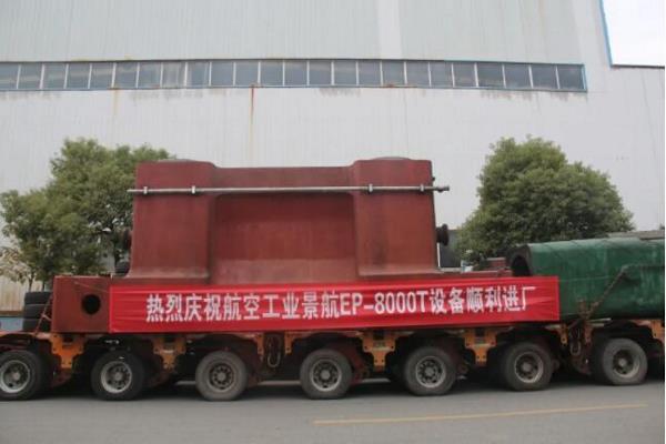 2021年11月16日,在熹微晨光中,載運江西景航航空鍛鑄有限公司(以下簡稱景航公司)第二臺EP-8000T設備底座的兩臺大型卡車徐徐駛近浮梁廠區大門,車頭紅花和橫幅標語相互映襯,給熱熱鬧鬧的現場平添一份喜慶。8時18分,隨著總經理胡遠軍一聲令下,設備進場正式啟動。董事長、黨委書記胡冬生,黨委副書記、紀委書記、工會主席吳占飛,財務總監朱亦民,副總經理毛志全、副總經理王志錄等公司領導及有關負責同志一道,共同見證這一歷史時刻。