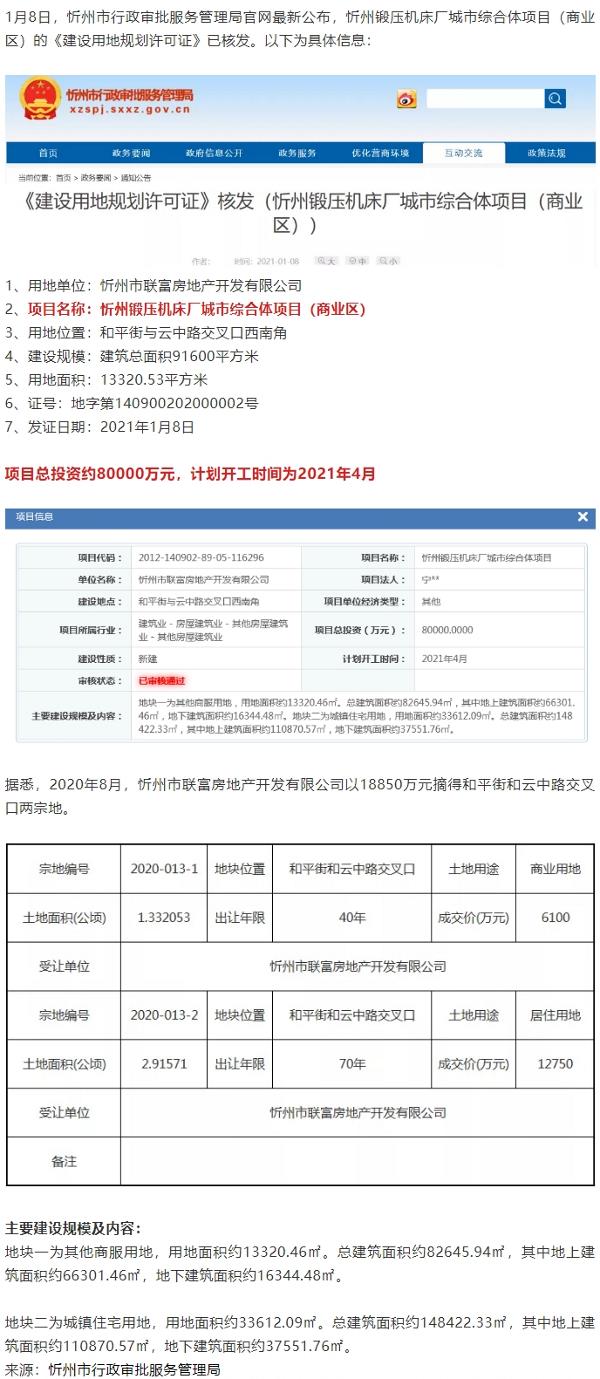 投資8億,4月開工!忻州鍛壓機床廠新建綜合體