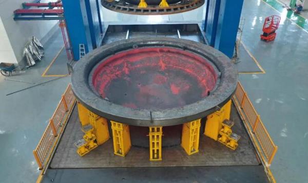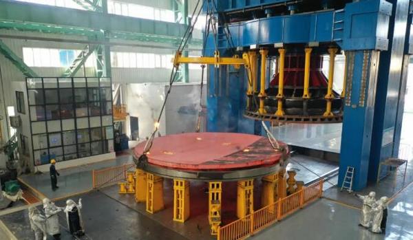 該設(shè)備一次成形生產(chǎn)的橢圓封頭、半球封頭,最大直徑可分別達(dá)7.5米、6.5米,封頭成形厚度可達(dá)36厘米,單件封頭重量可達(dá)12萬公斤,將不斷刷新一次成型封頭的“國內(nèi)紀(jì)錄”。