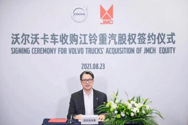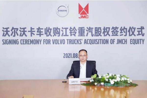 8月23日,沃爾沃卡車(Volvo Lastvagnar Aktiebolag)與江鈴汽車股份有限公司通過線上儀式正式簽署協議,收購江鈴重型汽車有限公司(下稱“江鈴重汽”)及其在太原的生產基地。沃爾沃(中國)投資有限公司總裁馬軍、沃爾沃卡車中國總裁董晨睿、江鈴汽車第一執行副總裁金文輝等出席該儀式。