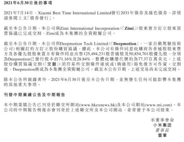 小米造車,自動駕駛先行。就在前天,小米集團發布Q2財報,財報顯示小米已經與自動駕駛技術公司DeepMotion(深動科技)相關訂約方訂立股份購買協議。