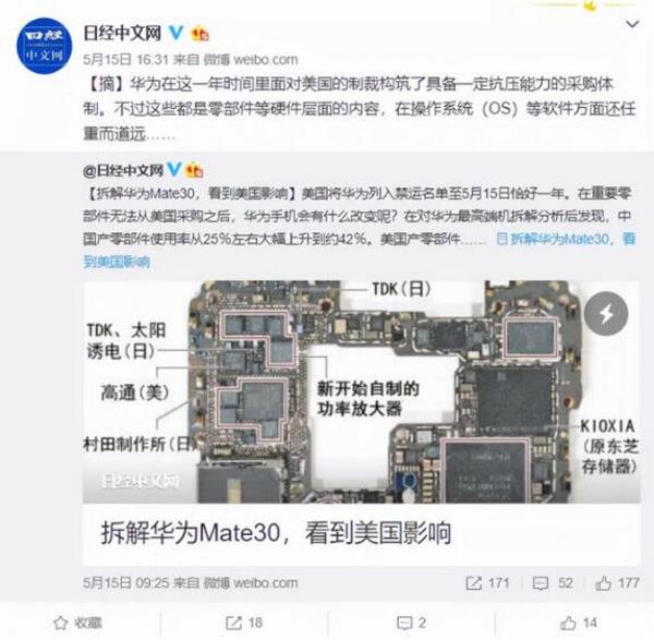 60%背后的艱辛 調研機構Fomalhaut Techno Solutions已經連續(xù)幾年對華為手機進行拆解分析。 2019年9月,Mate30中國產零組件占比不足30%; 2019年11月,Mate30(5G版)中國產零組件占比42%;