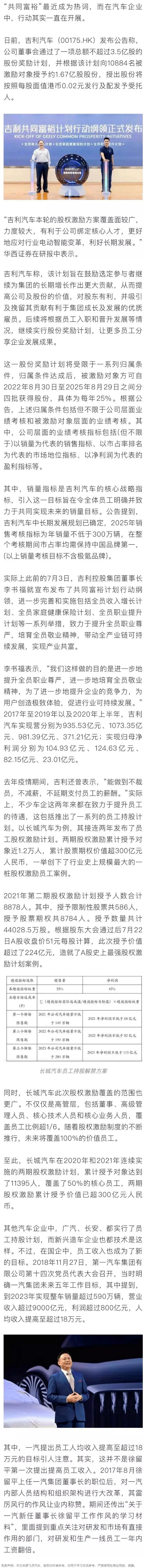 吉利、長城大面積股權激勵,一汽要人均18萬年薪,車企員工的春天要來了?