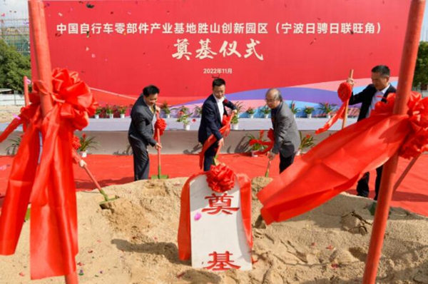 為進一步擴大勝山鎮“中國自行車零部件產業基地”影響力,加快推進產業治理體系和治理能力現代化,11月1日上午,中國自行車零部件產業基地勝山創新園區建設項目奠基儀式在勝山鎮舉行。該創新園由3家慈溪企業共同開發,總建筑面積約8.6萬平方米,總投資約2.75億元,是寧波首個自行車零部件產業創新園。 慈溪市人民政府副市長周高,浙江省自行車電動車行業協會理事長陳建龍,勝山鎮黨委書記李麗,市府辦副主任王萬益,發改局副局長羅偉,自規局副局長葉磊,經信局黨委委員沈紅杰,勝山鎮商會會長、日騁車業董事長徐明強等出席儀式。儀式由勝山鎮黨委副書記、鎮長陸啟云主持。