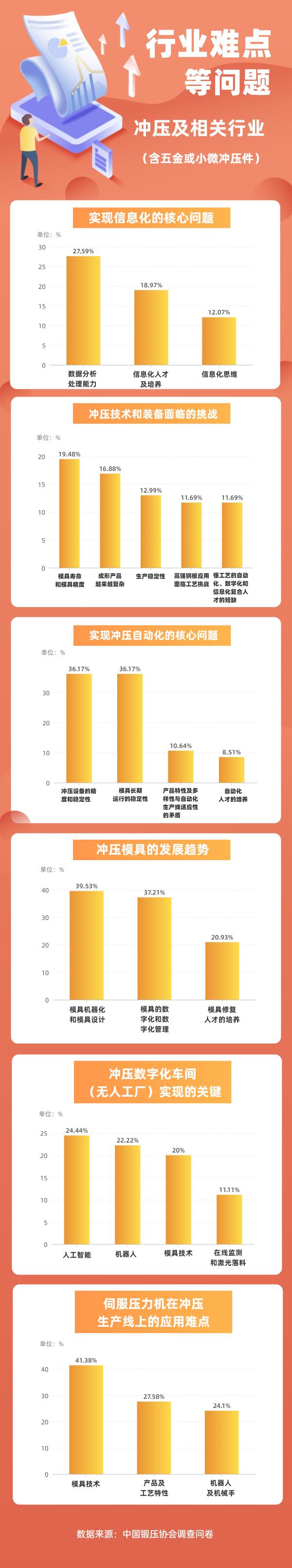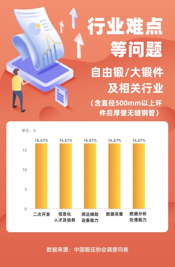 2021年11月開始,中國鍛壓協(xié)會通過網(wǎng)絡(luò)開展了問卷調(diào)查,設(shè)置了多個(gè)調(diào)研主題,目的是更好地引導(dǎo)企業(yè)了解行業(yè)發(fā)展態(tài)勢,為行業(yè)企業(yè)提供精準(zhǔn)服務(wù)。本文是第八個(gè)主題調(diào)查結(jié)果匯總分析。本處是對調(diào)查題目“模鍛及模鍛相關(guān)行業(yè)(含標(biāo)準(zhǔn)件、五金鍛件)、自由鍛/大鍛件及相關(guān)行業(yè)(含直徑500mm以上環(huán)件后厚壁無縫鋼管)、鈑金與制作及相關(guān)行業(yè)(含五金或小微鈑金件)、沖壓及相關(guān)行業(yè)(含五金或小微沖壓件)、金屬成形設(shè)備及相關(guān)行業(yè)難點(diǎn)等問題”進(jìn)行整理,列出了位于前列的大家最為關(guān)注的內(nèi)容,結(jié)果如下。 01