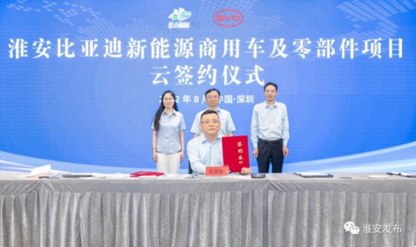 8月3日,淮安比亞迪新能源商用車及零部件項目云簽約儀式舉行。 市委書記陳之常,比亞迪股份有限公司總裁、董事長王傳福致辭。市長史志軍主持云簽約儀式。市領導顧坤、趙權、王向紅,比亞迪集團領導王杰、李巍、田春龍參加活動。 陳之常說:“這次云簽約,是一場老朋友的聚會。淮安和比亞迪集團之間的合作由來已久,自2017年全面戰略合作開啟以來,雙方互訪不斷、親密無間,在新能源汽車推廣、專用車生產、貨車基地建設等方面建立了良好合作關系。” 近年來,比亞迪集團創造了令人欽佩的發展業績。淮安牢固樹立“項目為王、環境是金”工作導向,高效統籌疫情防控和經濟社會發展,持續開展重特大項目攻堅,推動一批重量級、引領性的大項目、好項目相繼開花結果,特別是百億級制造業項目持續突破,為發展注入了強勁動能。 淮安與比亞迪集團攜手并肩、互相成就,雙方都取得了不錯的成績。 這次云簽約,更是一段新合作的起點。在前期友好合作的基礎上,比亞迪集團再次選擇在淮安布局新能源商用車及零部件項目。 淮安將認真踐行101%服務理念,集成政策、集聚資源打造最優營商環境,為比亞迪集團在淮發展提供全方位貼心服務,努力讓比亞迪淮安項目成為標桿典范、引領示范。 淮安工業園區和市相關部門要全力做好幫辦服務,推動項目加快落地建設。 我們也真誠希望以此次項目簽約為新的起點,與比亞迪集團在更廣領域開展合作。