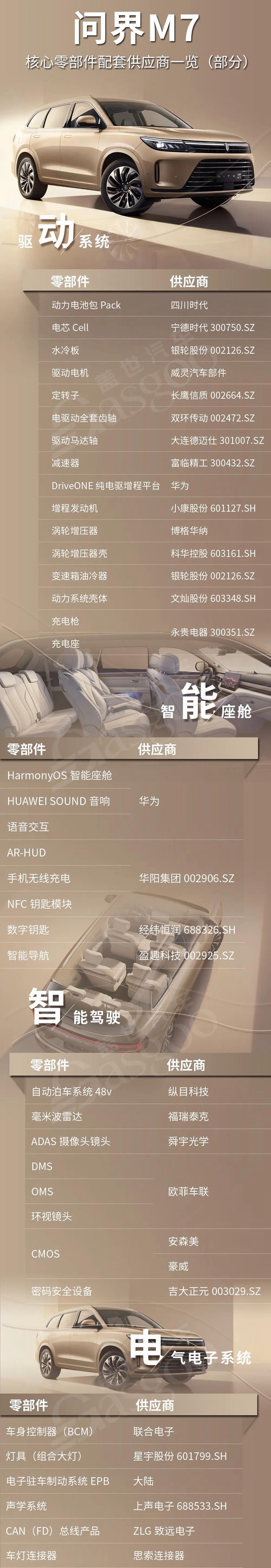 • 含“華”量頗高,問界M7核心零部件配套供應(yīng)商一覽