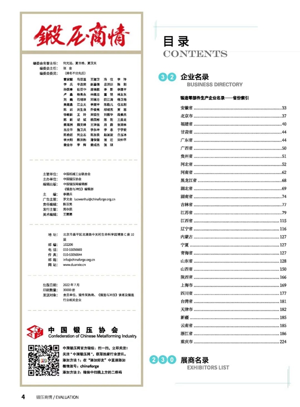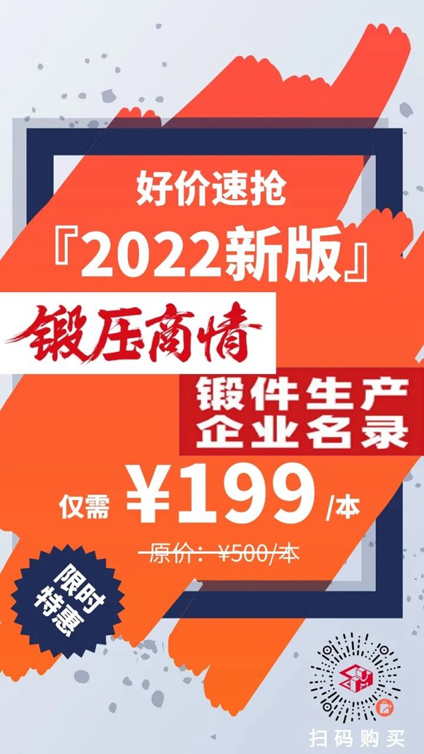 限時特惠 為了更好地服務鍛造行業,《鍛壓商情—鍛件生產企業名錄》2022版現已發布。本刊內容以鍛造零部件企業名錄為主,共收集5000余家鍛造企業信息,是鍛造相關企業開拓市場的指導用書,也是采購商查詢企業及產品信息的便利指南。