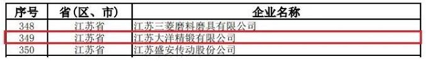 日前,江蘇省第四批專精特新“小巨人”企業和第一批專精特新“小巨人”復核通過企業名單公示期滿,江蘇大洋精鍛有限公司成功入選。