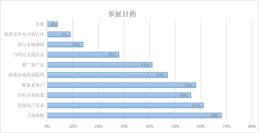 經由微信(朋友圈、公眾號、微信群)、同行好友、打電話告知前來參觀的觀眾人數最多;其次為傳統紙媒、裝備嘉族;抖音、短信、微博、電視、廣播渠道也有效觸及了行業人士。 三、展商數據分析: 本屆展會吸引了來自美國、日本、英國、德國、韓國、瑞士等10余個國家以及中國香港、中國臺灣地區和國內20多個省市機電行業制造商報名參展。馬扎克、牧野、埃馬克、哈挺、迪恩、津上、雷尼紹、友嘉、永進、油機、紐威、臺群、邁萃斯、不二越、華中數控、喬揚、寶科、新諾、CY、揚森、創能、友龍、德揚、久勛、中揚、巨高、智目、金嶺、華集、華特、臺功、德杰、日野、恒望、古田、精機琥正、通大、中星、江南、普魯特、東部、江蘇金諾、寶宇、巨匠、西格馬、仲全、GF、寶煜、華特、鐵正、普拉迪、華恩、齊星精創、德力、弘迪、全永、合盈、瑞均、大鐵、漢奇、寶瑪格、睿澤、捷程、慶鴻、漢霸、漢奇、碩方、木村、惠東、博達、森特威、美創匯誠、國瑞恒順、震聲機電、世紀祥通、世紀天一、金仕達、利勁、鑫忠信、同心、賽帕埃惜、耐霸、一準、以賽亞、科威晶、奧勝達、科普鑫宇、匠心、世匠、西門子、偉斯、米宏、德柔、釜正、紅旗、百靈、碩克、京騰、上大恒精、晟元興、耐斯、耀欣、益新、力創、千島、昶冉、普諾克、英絡克、捷甬達、名井、榮諧、金美威、鑫凱鋒、天合、旨恒、魯重、天友、揚力、重裝、晉誠、比優特、臺穩、SLM、觸點、斯柯特、三環、艾蓓斯、中力、諾高工業、卓藍、科聰、云雀、摩卡、芯合、山大華天、伊瑪、精坐標、唯景三維、雷普、威浦、速睦喜、事德納、合發齒輪、聯安機電、山口、德諾、瑞氣、臺菱、博銳恩、明海達、威德諾、恒優達、歐恩、安川、龍思達、鴻鐳、力夫特、亞德客、博億精科、偉爾仕、安美科技、福協德、飛達、新發現、瑞大、新思路、拉古那、新智特、明國、乾鼎、日暢、東亞等品牌強勢集結,各項前沿技術在此匯聚,盡顯工業智造高速發展之勢。 1.參展目的