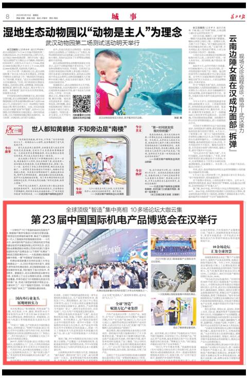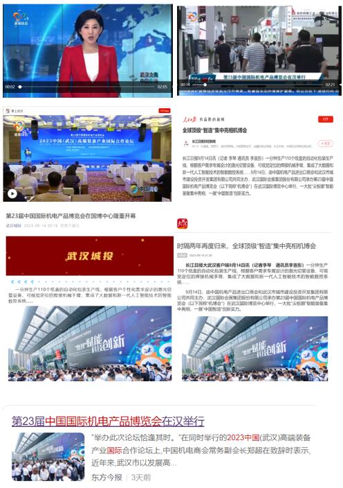 展會前中后期,獲武漢電視臺一臺新聞綜合頻道、長江日報、人民日報、掌上武漢、大武漢客戶端、騰訊新聞、東方今報等主流媒體采訪報道,以及城投集團微信公眾號、行業專業媒體機械工程師雜志社、磨削世界雜志社、現代機床雜志社、QC檢測儀器網、刀具界雜志社、行訊金屬加工網、機床工具制造業雜志社、機床市場采購網、機床制造產業雜志社、機器人技術與應用雜志社、模具制造雜志社、天下機械網等100多家行業合作媒體集中發聲。