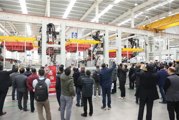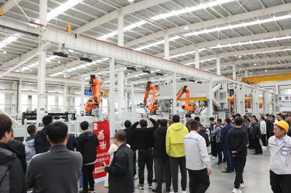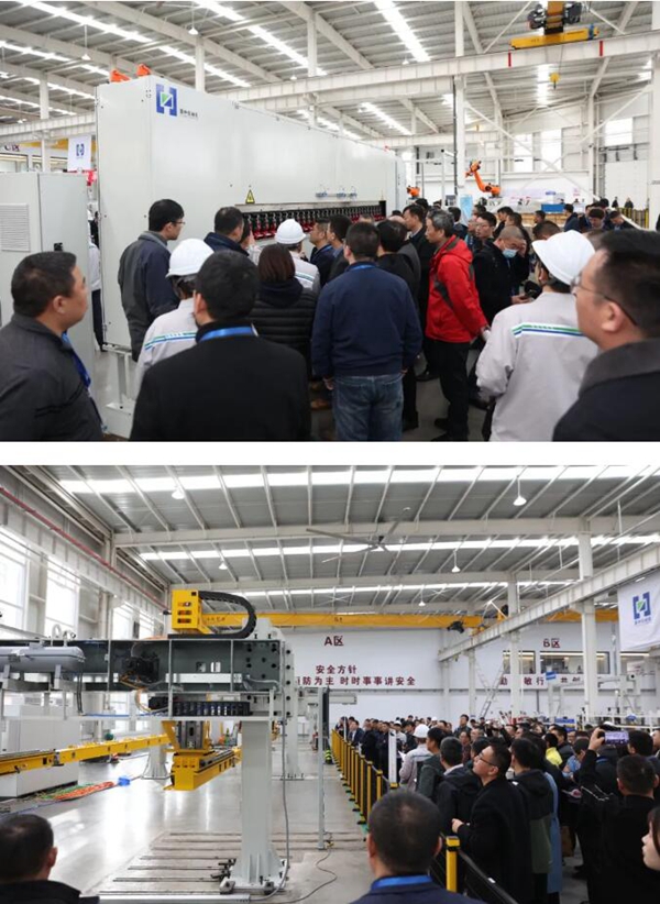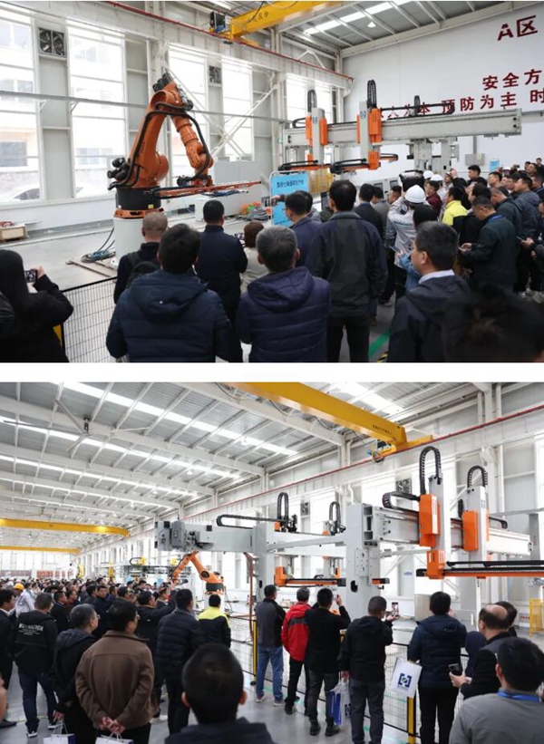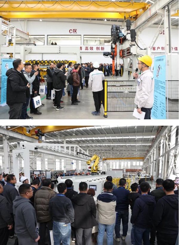 10日上午,參加本次論壇的代表在濟南昊中自動化有限公司 總經理 何剛先生 的帶領下,現場參觀了昊中最新研發18SPM單臂沖壓線自動化系統、自動上料系統、自動裝箱系統、大間距單臂、多工位、熱成型機械手、熱成型自動裝箱、干式清洗機、在線質檢系統等裝備。