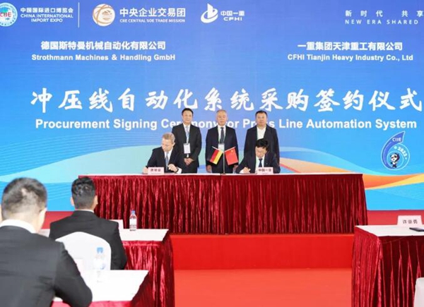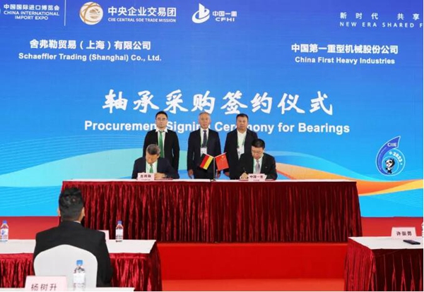 11月6日,中央企業(yè)交易團中國一重交易分團舉辦第六屆中國國際進口博覽會主場簽約儀式,分別與舍弗勒貿易(上海)有限公司、德國斯特曼機械自動化有限公司、富力拓國際貿易公司、賽拓瑞投資有限公司簽訂采購協(xié)議。