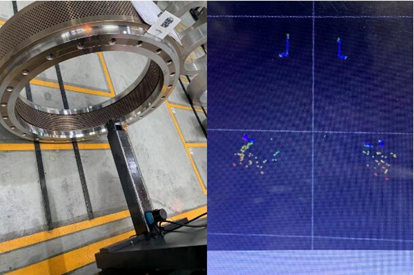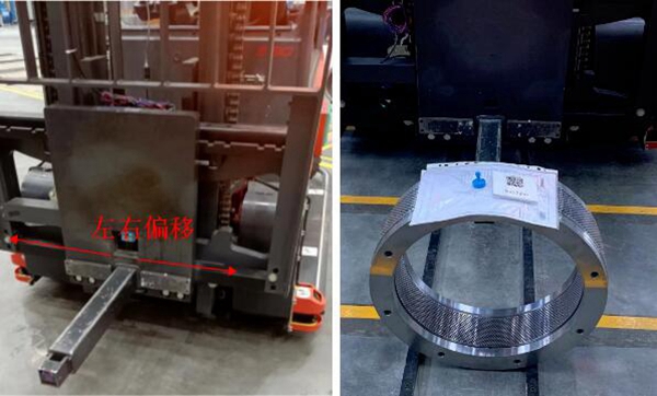 2、根據獲取的點云數據,使用相關的算法獲取到環模的中心。 3、將獲取到的環模的中心數據通過TCP/IP方式發送給AGV的控制器,AGV根據環模的中心的相對位置,左右側移貨叉。實現貨叉從環模中心進叉叉取環模,避免撞倒環模。
