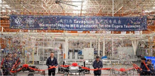 大眾一汽平臺零部件有限公司是由大眾汽車中國投資有限公司與富奧汽車零部件股份有限公司合資成立的,公司主要生產新能源汽車后副車架懸架、角膜塊總成、前副車架等汽車關鍵底盤零部件,主要為一汽大眾、上海大眾、大眾安徽供貨。本次下線的前橋、后橋、角模塊底盤總成,是大眾安徽新能源汽車Tavascan底盤零部件。