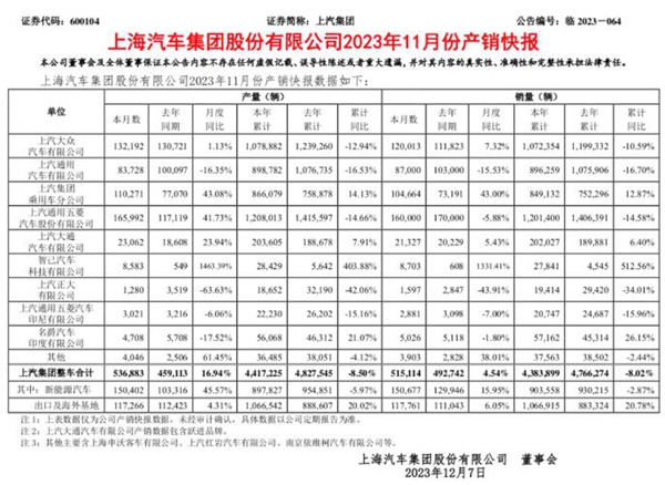 進(jìn)入2023年后,受車市價格戰(zhàn)等因素打擊,上汽集團(tuán)銷量未見起色。最新數(shù)據(jù)顯示,今年1-11月,上汽集團(tuán)累計(jì)銷量為438.39萬輛,同比下滑8.02%。按照規(guī)劃,2023年上汽集團(tuán)的年銷目前為600萬輛,這也意味著上汽集團(tuán)或無法實(shí)現(xiàn)年銷目標(biāo)。行業(yè)認(rèn)為,上汽集團(tuán)銷量不振與合資品牌式微關(guān)系密切,其中上汽大眾同比下滑10.59%,上汽通用五菱同比下滑14.58%。 在新能源方面,上汽集團(tuán)旗下共有智己和飛凡兩大新能源品牌,而作為智己和飛凡汽車的負(fù)責(zé)人,蔣峻和吳冰自然承載了上汽集團(tuán)自主品牌電動化轉(zhuǎn)型的重任,不過從數(shù)據(jù)來看,這兩大品牌尚未在中高端新能源市場站穩(wěn)腳跟。數(shù)據(jù)顯示,今年1-11月,上汽集團(tuán)新能源汽車?yán)塾?jì)銷量為90.36萬輛,同比下滑2.87%。其中智己汽車?yán)塾?jì)銷量為2.78萬輛,雖然同比大幅增長512.56%,但與目前主流新能源品牌相比仍有較大的差距。