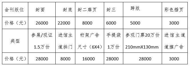 新技術產品推介交流與研討會:每場10000元/30分鐘。主辦機構負責安排場地、桌椅、投影儀、燈具及音響,協助主講企業組織聽眾(請自備手提帶)。(更多推廣機會,請參考參展細則或致電組織方咨詢) 【會刊、會場及印刷品廣告】