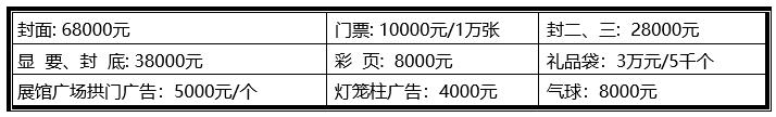 參展費(fèi)用: 國(guó)內(nèi)參展商:標(biāo)準(zhǔn)展位13800元/全展期/個(gè)9㎡,27600元/全展期/個(gè)18㎡ (雙開口另加1000元) 空 場(chǎng) 地:1380元/㎡, 36㎡展位起租(按每平方米28元交納展場(chǎng)施工管理費(fèi)) 國(guó)外參展商:4500美元/全展期/個(gè)9㎡ 空 場(chǎng) 地:4500美元/㎡(按每平方米28元交納展場(chǎng)施工管理費(fèi)) 9㎡展位配置:圍板、中英文楣板、洽談桌一張、椅子兩把、垃圾桶1個(gè)、日光燈二支。 一個(gè)3A電源插座。 產(chǎn)品發(fā)布會(huì)、技術(shù)研討會(huì)/每節(jié)5000元。 本屆大會(huì)會(huì)刊,用32開(210mm×140mm)進(jìn)口銅版紙,精裝印刷,在大會(huì)期間派發(fā)給參觀人士。 歡迎企業(yè)刊登廣告版面及其它宣傳方式,收費(fèi)標(biāo)準(zhǔn)如下:()