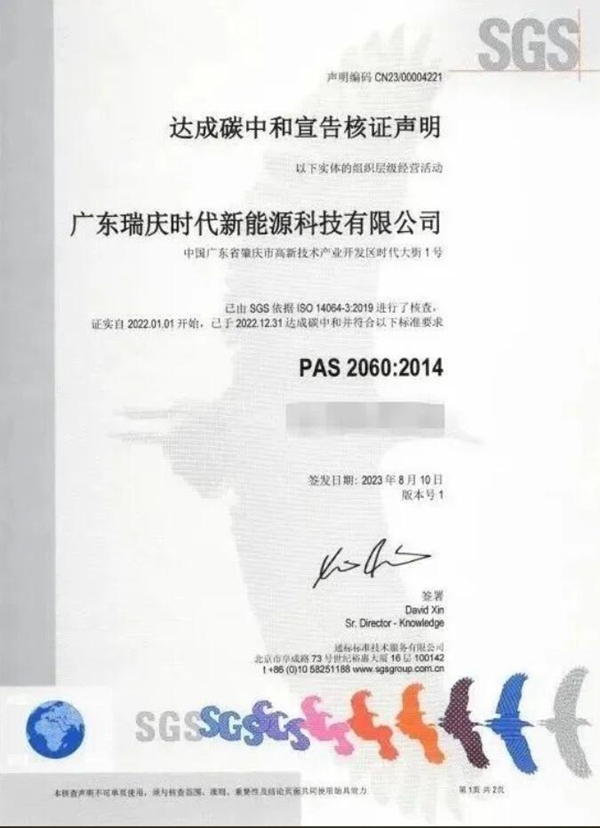 寧德時代近日官宣,旗下全資子公司——廣東瑞慶時代新能源科技有限公司正式獲得全球知名認證機構SGS頒發的PAS2060碳中和認證證書,正式躋身零碳工廠行列。 這是寧德時代首個儲能電池為主的零碳工廠,也是繼四川時代宜賓工廠之后的第二個全資電池零碳工廠。據悉,除上述兩家外,寧德時代與吉利汽車合資成立的“時代吉利”也屬于“零碳工廠”。