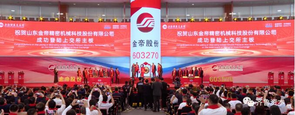 9月1日上午9點(diǎn)30分,隨著一聲響亮渾厚的鑼聲,山東金帝精密機(jī)械科技股份有限公司首次公開(kāi)發(fā)行股票并在上海證券交易所主板成功上市。