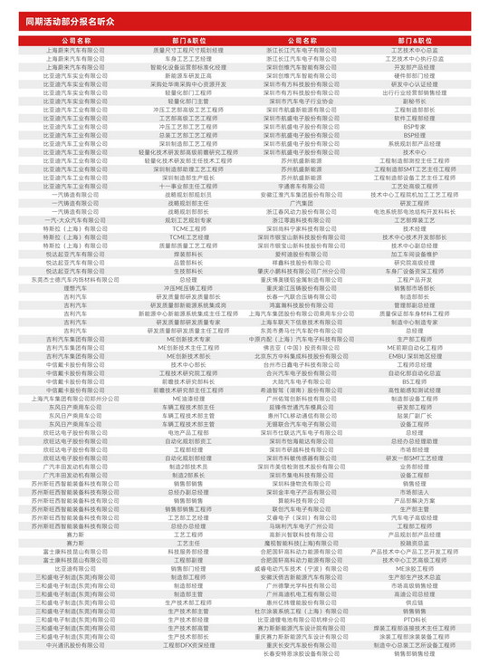 來(lái)自蔚來(lái)、奔馳、比亞迪、一汽、特斯拉、理想等頭部企業(yè)的行業(yè)領(lǐng)軍者都將到場(chǎng),濟(jì)濟(jì)一堂,群賢畢集。旨在通過(guò)深入挖掘新能源三電與智造技術(shù)、汽車(chē)用膠涂膠趨勢(shì)及智能檢測(cè)技術(shù)、一體化壓鑄技術(shù)、汽車(chē)電子數(shù)智化技術(shù)的創(chuàng)新潛力與發(fā)展前景,為汽車(chē)工程及工業(yè)裝配技術(shù)人員構(gòu)筑一個(gè)全新的聯(lián)接平臺(tái)。